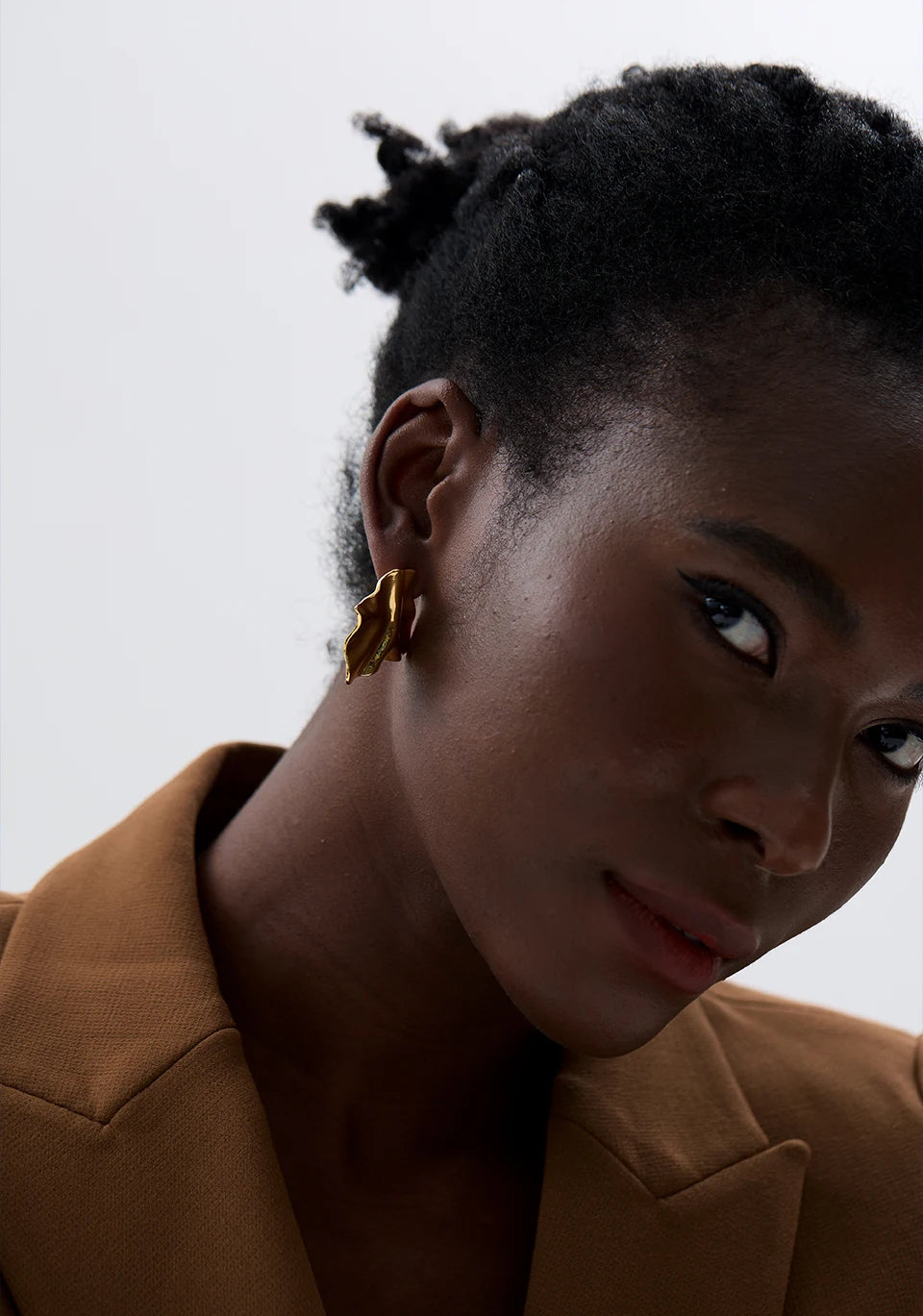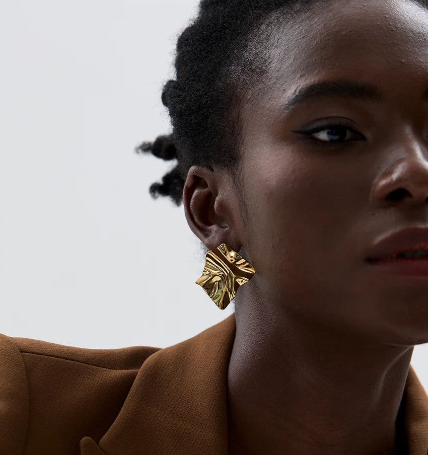O Brinco Duna captura a beleza orgânica do deserto, onde o vento esculpe a areia em formas fluidas e inconstantes. Sua superfície dourada e ondulada reflete a luz de maneira única, criando um jogo hipnótico de brilho e sombra a cada movimento. Uma joia criada para celebrar a sua beleza natural e a força que existe na constante transformação.