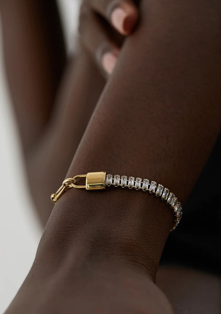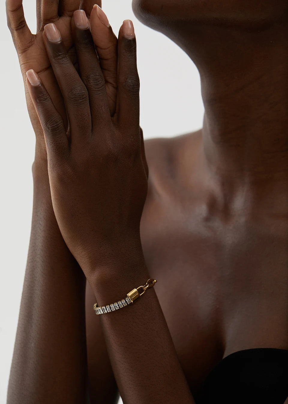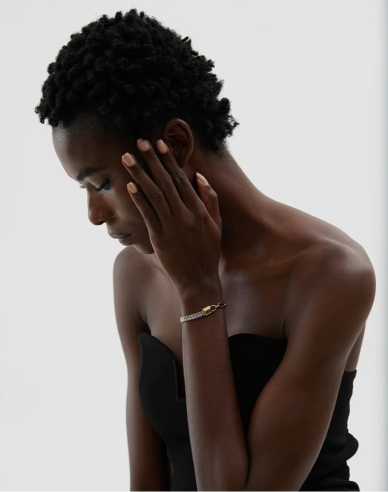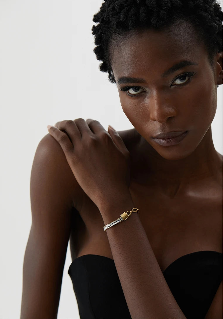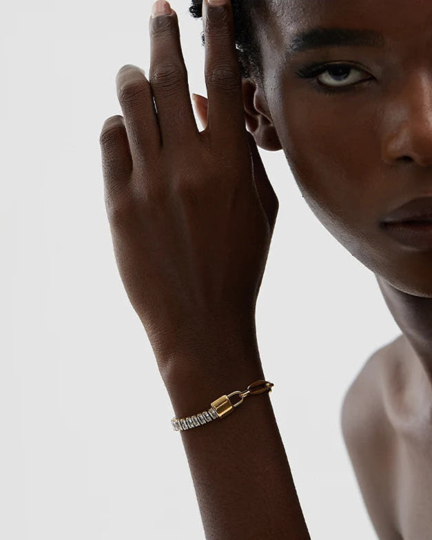 A Pulseira Ayla é o encontro da força urbana com o brilho celestial. De um lado, a corrente de elos representa o design moderno e arrojado; do outro, uma fileira de zircônias reluz como uma auréola de luz. É uma joia de contrastes que une o industrial e o delicado em um equilíbrio perfeito, feita para a mulher de múltiplos brilhos, que caminha com a mesma confiança na luz do dia e sob as estrelas.