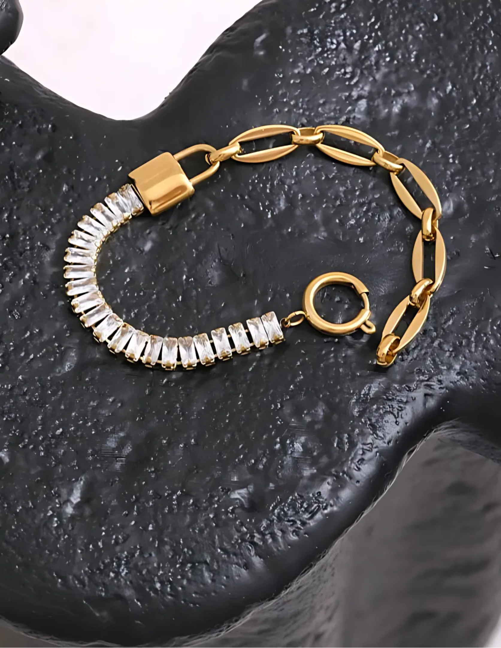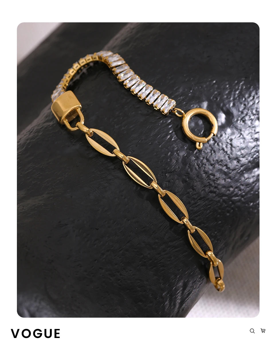 • Dualidade Moderna: A combinação ousada da corrente com o brilho clássico das zircônias.